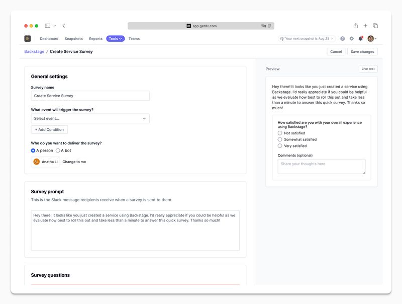 Target participants narrowly. Don’t interrupt developers with irrelevant surveys. Acme only sends surveys when there’s a clear connection between the question and the developer’s recent experience.