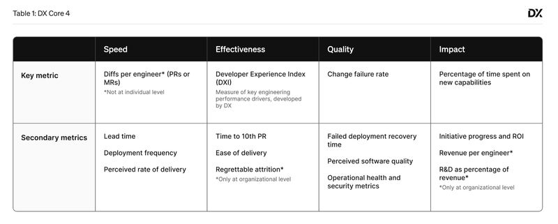 With strong CEO and CTO sponsorship, this framework and its measurable targets turned DXI and Core 4 metrics (including PR throughput and cycle time) into shared outcomes for engineering leadership, rather than side‑channel reporting.