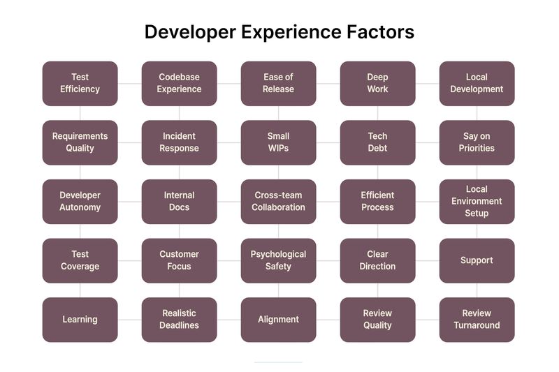 Choosing what to measure is foundational to a successful developer experience program. Here, we’ll cover the topics to measure, ways to measure them, and other important information to capture in your developer experience survey — all while weaving in insights from implementing our Snapshots product with organizations of all sizes.