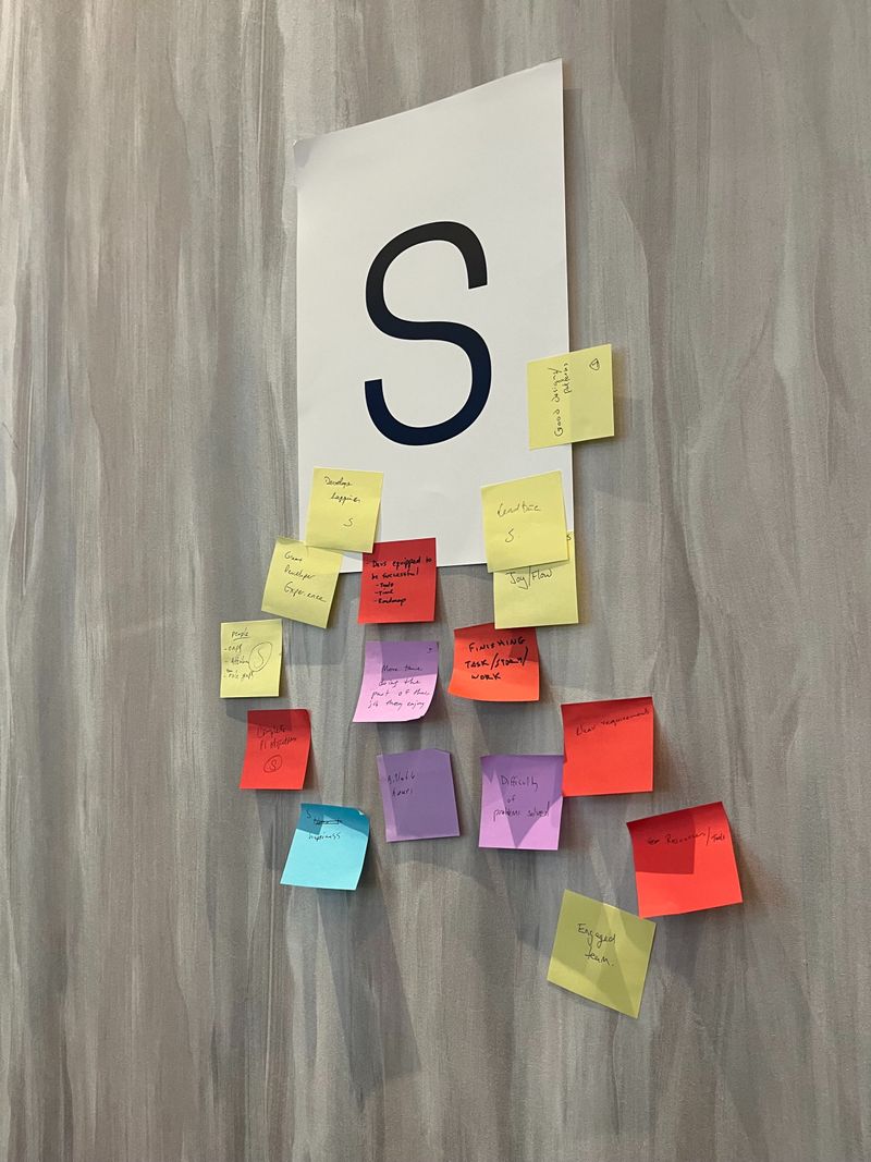 In order to sort out these sticky notes, we used the SPACE Framework of Developer Productivity, which outlines five main dimensions of developer productivity: