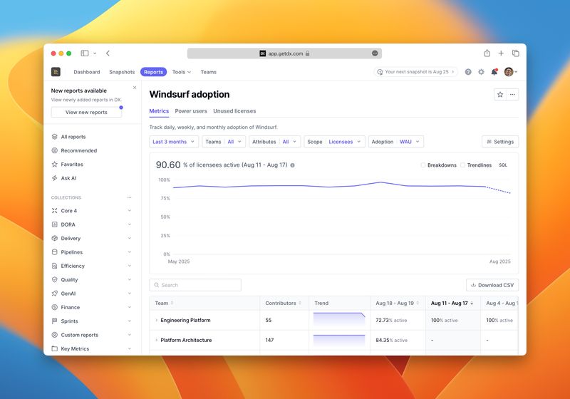 That’s why we’re glad to announce DX is expanding its support for leading AI tools with the release of a new DX + Windsurf integration. With this integration, DX customers can now gain deep visibility into how Windsurf is being used across their organizations.