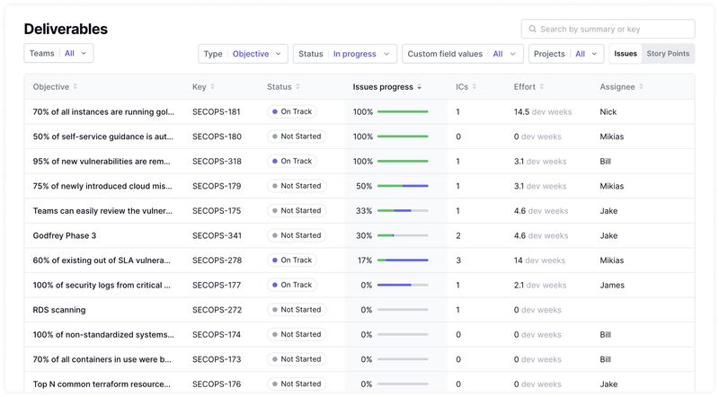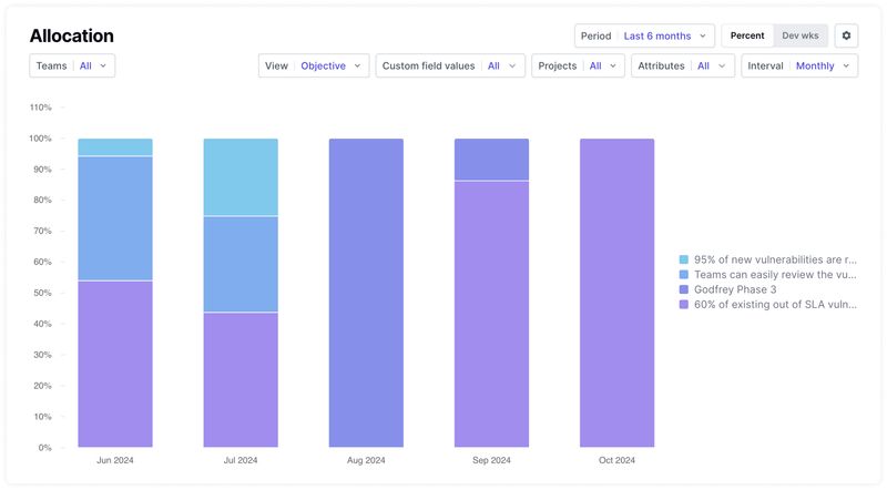 See how your teams’ efforts are distributed across roadmap priorities. Make adjustments swiftly to stay on track.