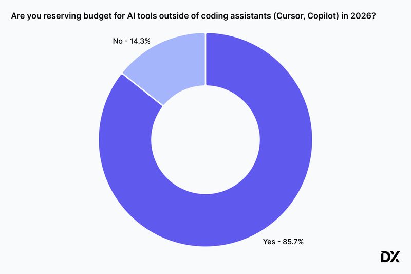 2026 will also see a lot of expansion in the AI tool ecosystem beyond AI coding assistants like Copilot, Cursor, and Claude. 85.7% of leaders surveyed shared that they are reserving some cash in their 2026 budget for AI tools that are not directly related to code authoring. These might be tools around code review, debugging, and security tools, but also AI tools on the project planning side, and tools for documentation.