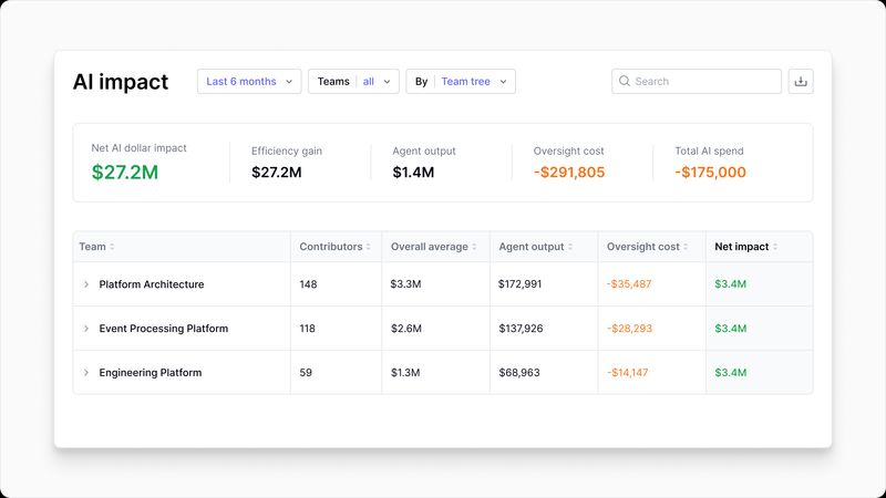 AI-generated code attribution. See exactly which commits and PRs contain AI-generated code. The new AI Code Overview report lets you explore critical SDLC lifecycle metrics bucketed by the percentage of AI in each PR—so you can start to understand how AI-generated code moves through your development process differently than human-written code.