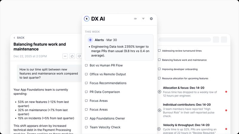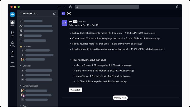 Today, we’re announcing DX Pulse—a proactive alerting layer built specifically for frontline engineering managers. Pulse brings your team data in DX directly to you, so you can act on what matters without hunting for it.
