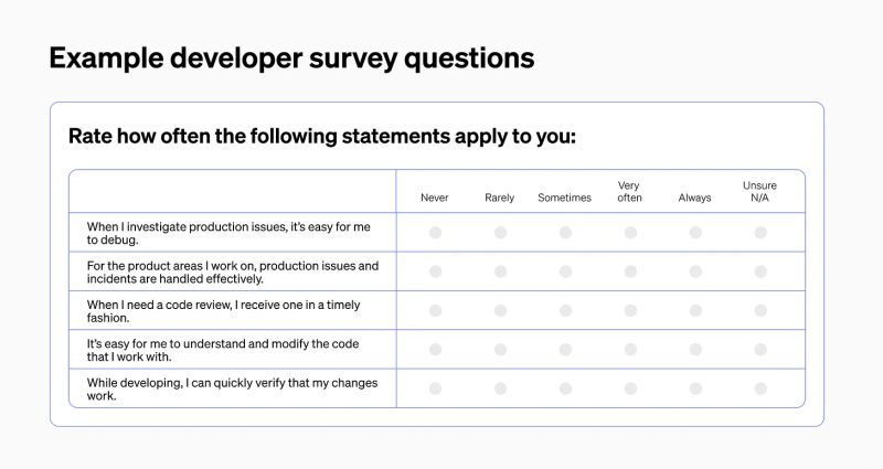 Abi: That’s fair. But directionally, I think it yields insight - people know what they’re frustrated about. They know when they can’t get their diffs approved or tests take too long to run. That’s why we juxtapose it with objective measures like throughput. None of these measures are perfect individually or collectively, but they help us get closer and more aligned on how to talk about and approach this.