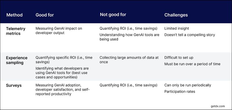Real-time experience sampling with PlatformX allows DX users to collect detailed data on specific tasks. This can provide concrete examples of time savings as well as surface impactful AI use cases, aiding in onboarding and developer training.