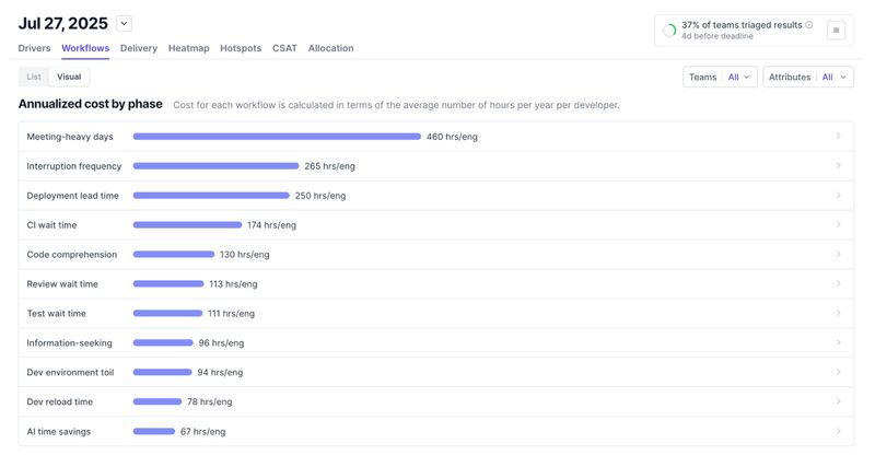 1. Across the board, the acceleration gains from AI are still outweighed by some of the inefficiencies that exist across the SDLC. All of the traditional issues, such as excessive meetings, interruptions, and code quality, still hinder us today and remain problems we need to solve.