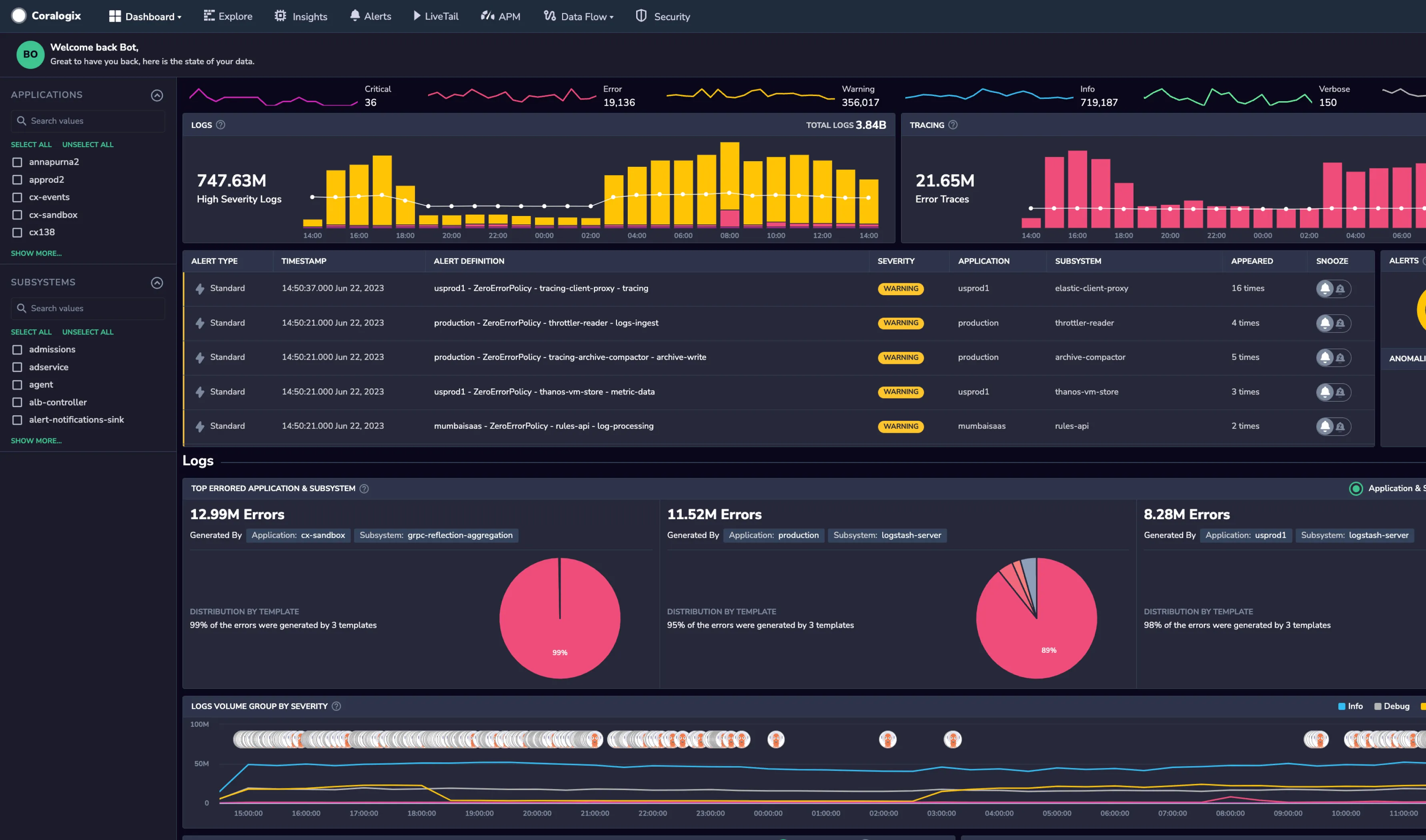 Coralogix provides log analytics and real-time monitoring solutions, helping teams improve system performance and resolve incidents quickly and effectively.