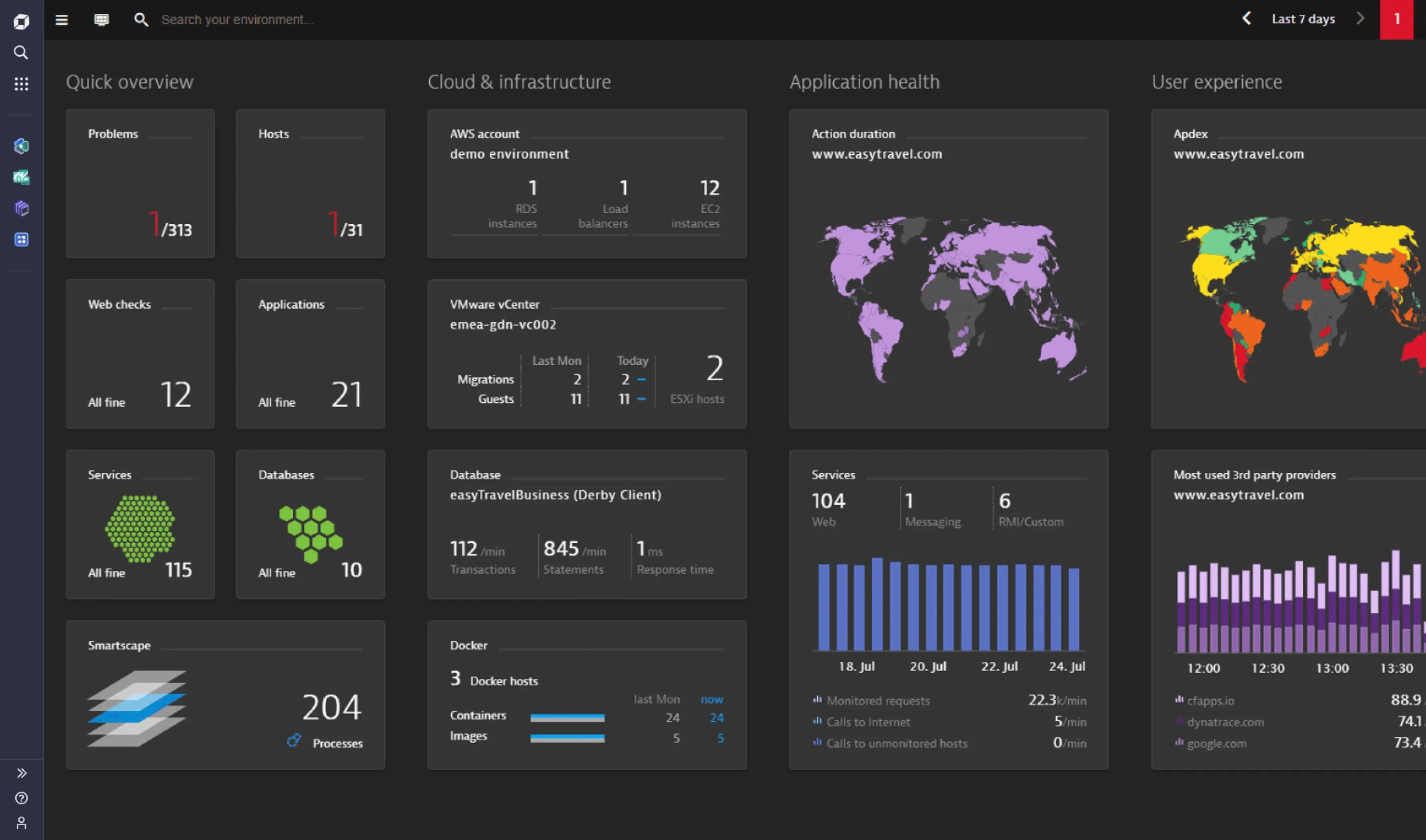 Dynatrace offers application performance monitoring, AI-driven insights, and end-to-end observability, helping teams optimize applications and infrastructure.