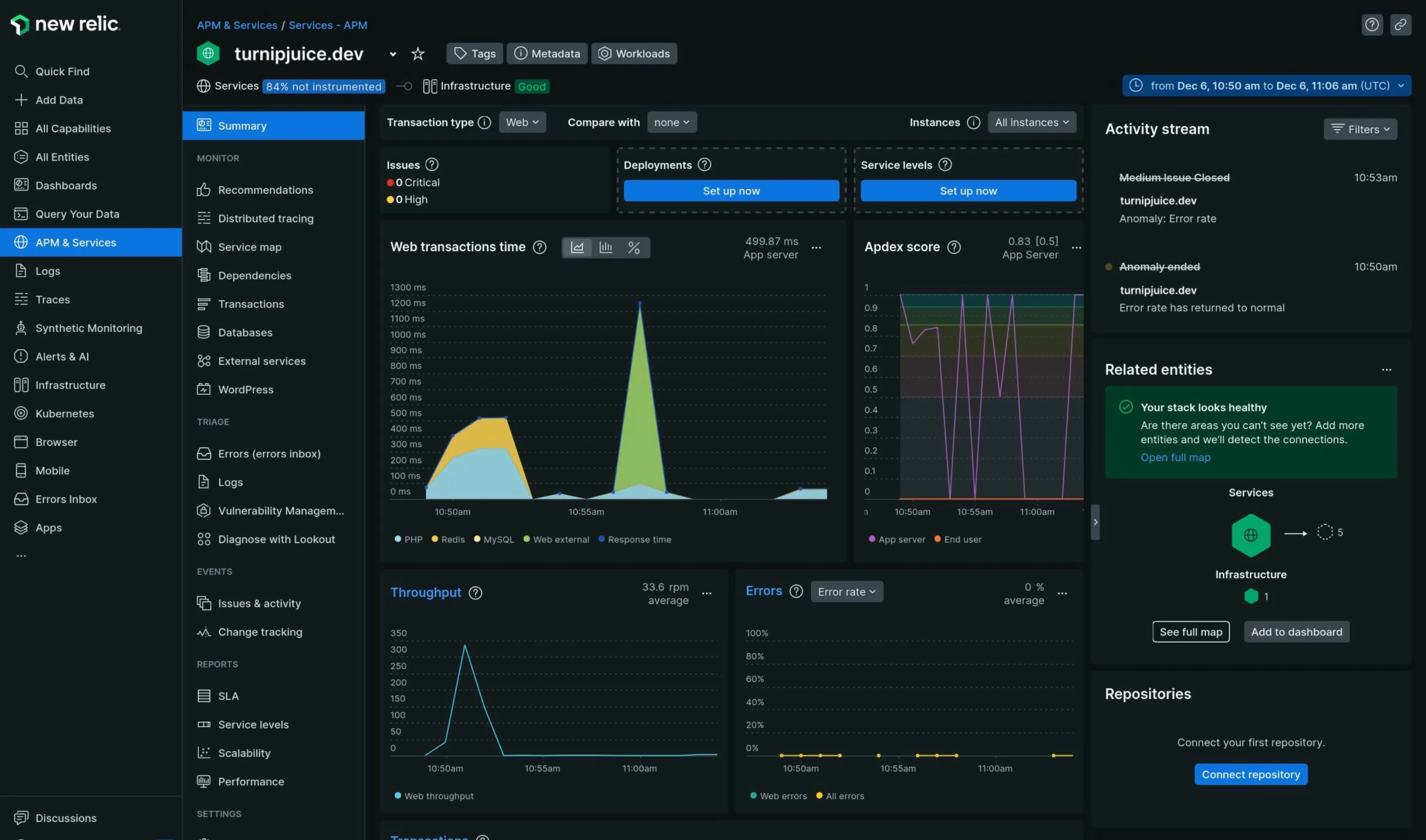 Connect New Relic and DX to monitor application performance, providing actionable insights and comprehensive reporting tools.