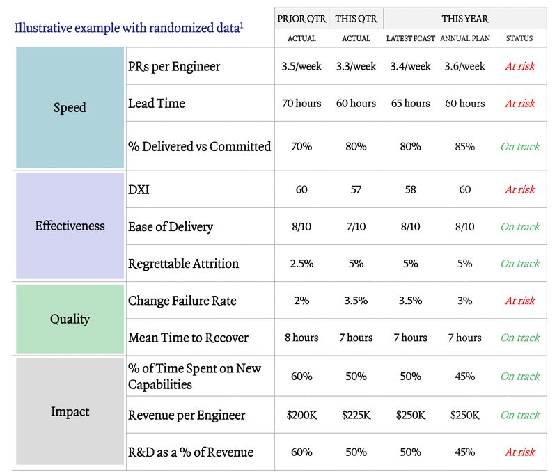 ICONIQ Growth’s latest report recommends using the DX Core 4 framework for tracking developer productivity and for creating an Engineering Scorecard to include in board updates. The report states: “Over the past few years, we have seen different variations of frameworks like DORA, SPACE, and DevEx all with the aim of measuring engineering productivity. However, we found each framework to be missing critical components and wished that there was a comprehensive framework that combined business impact, development velocity, performance and reliability, and developer effectiveness… We believe [the DX Core 4] framework provides a focused set of metrics that work effectively at any sized organization and allows organizations to get immediate, actionable insights into productivity questions.”