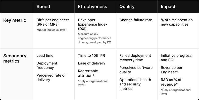 This framework has been tested and refined with over 300 organizations, helping organizations achieve outcomes such as 3-12% increases in engineering efficiency and 14% increases in R&D time spent on feature development.