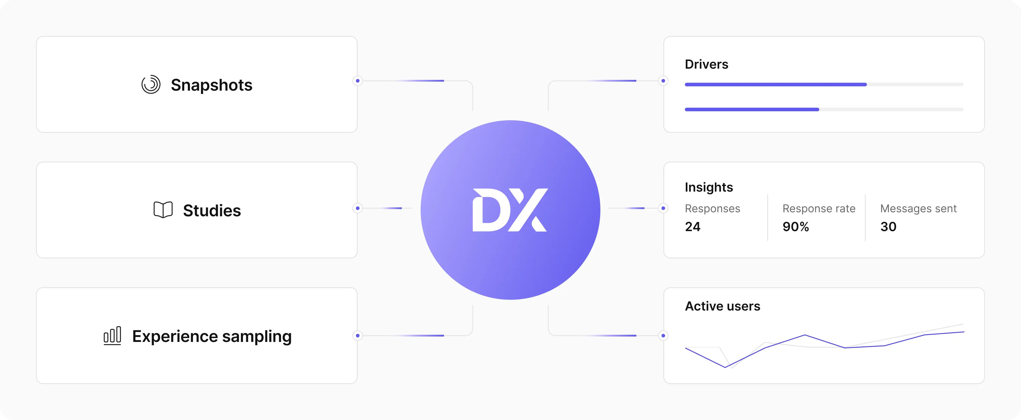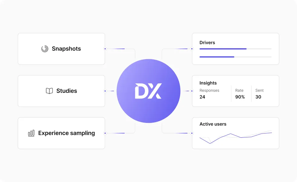 DX's qualitative insights platform enables periodic and real-time data collection, all powered by unrivaled 90%+ response rates.